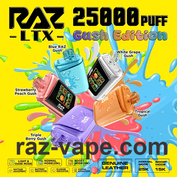 - RAZ LTX 25000 Gush Edition is only $20.99 💵. With 25,000 puffs and delicious flavors, it’s a steal! 🤑💥